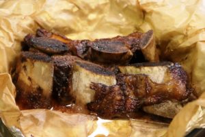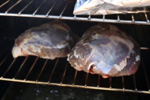 אחרי שעה עטפתי כל לחי בנפרד בנייר קצבים וברדיד אלומיניום והחזרתי למעשנה בחום של 100-110 מעלות.