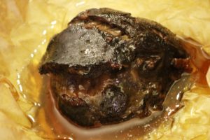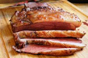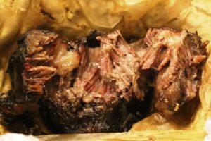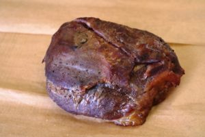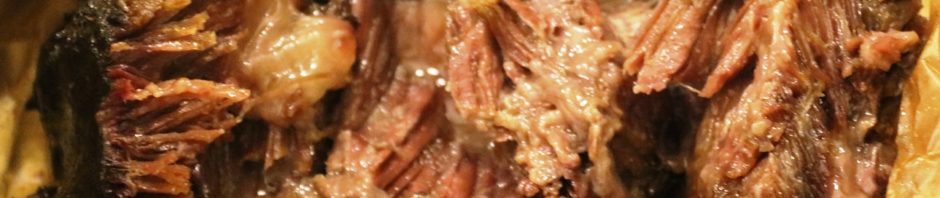 9.5 שעות עישון – 95 מעלות (יכול להיות שהיה יותר וכבר התחיל לרדת) הבשר רך, המון ג'לטין מסביב, מעט מלוח מידי אבל טעים ומזכיר את מה שטעמתי.
