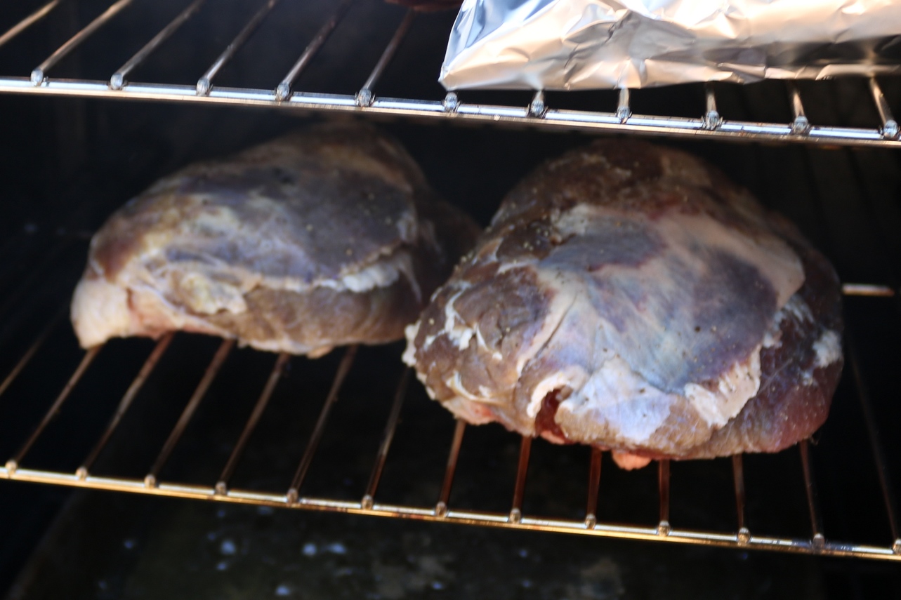 אחרי שעה הכנסתי אותה לבישול של 5 שעות בטמפרטורה של 65 מעלות לצורך ריכוך.