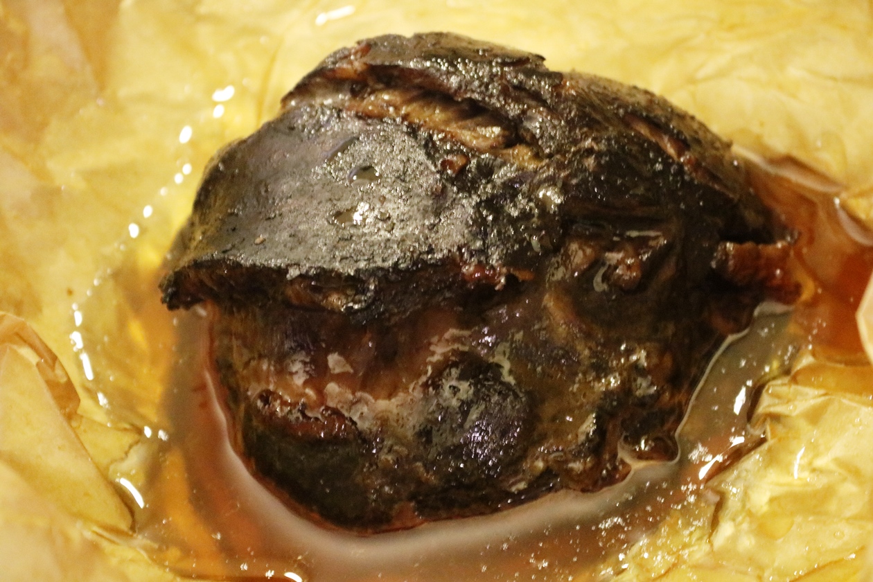 אז הושטתי את ידי אל החבילה של הלחי (השנייה), הפשרתי במקרר, תיבלתי בפלפל שחור גרוס בלבד.
