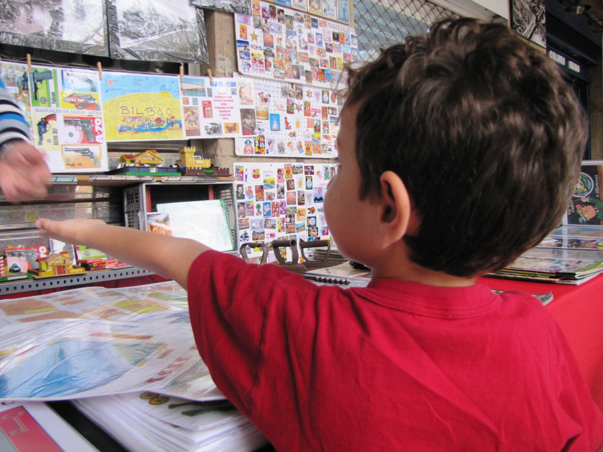 דוכני השוק הטיפוסי של יום ראשון בבוקר מתחילים להיפתח בפלאצה נואבה וכוללים ספרים, תקליטים, מטבעות, אבנים, פוסטרים ועוד. זה המקום שבו כל אספן יכול למצוא משהו כלבבו, כולל תומר שמתרגל קנייה מול מוכר דובר ספרדית.