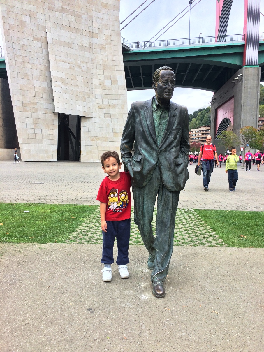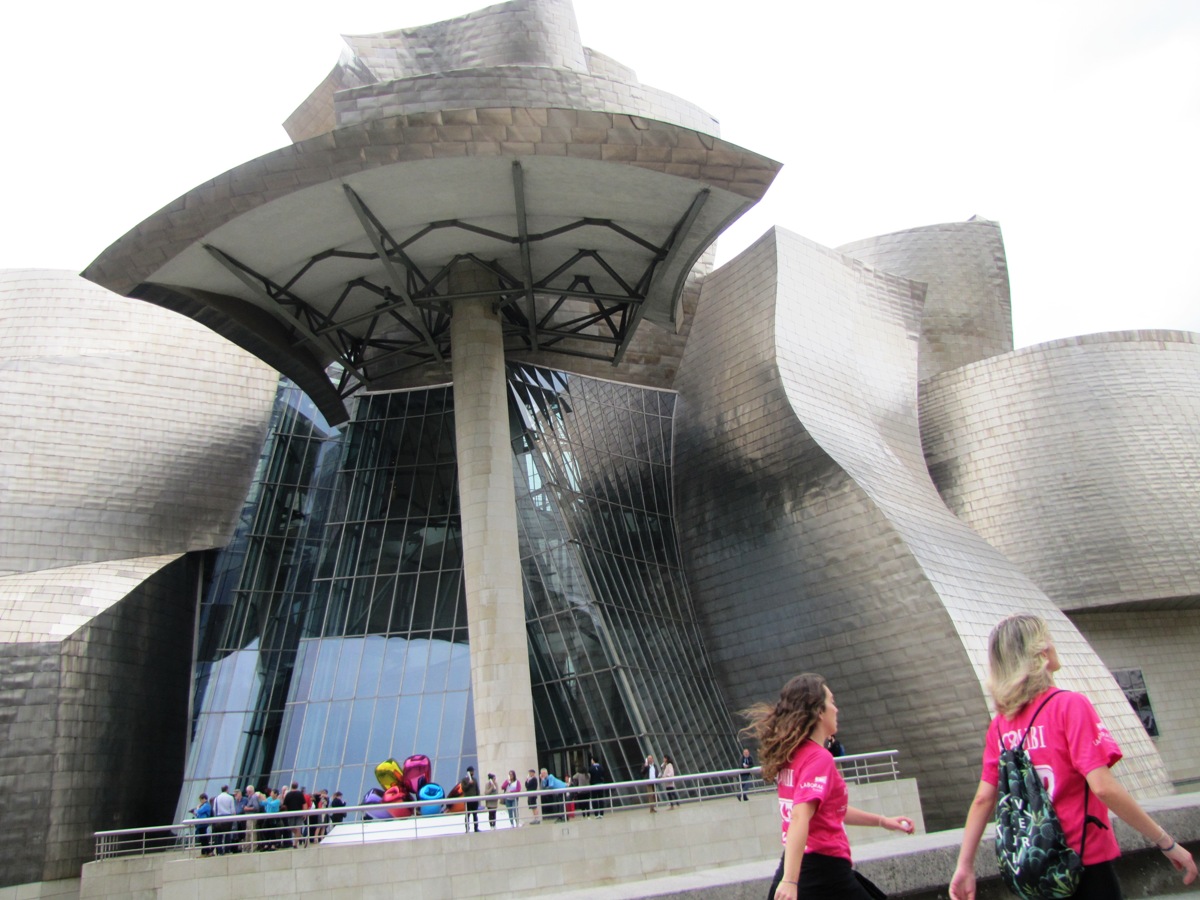 עשינו צ'ק-אאוט והמשכנו ברגל לכיוון מוזיאון הגוגנהיים של בילבאו בעיצובו של האדריכל פרנק גרי. בדרך נקלענו למרוץ של אלפי רצים: נשים וגברים, זקנים וילדים ואפילו כלבים וכולם בחולצות ורודות עם סמל המאבק בסרטן השד. נקודת הסיום של המרוץ ממש בכניסה למוזיאון.