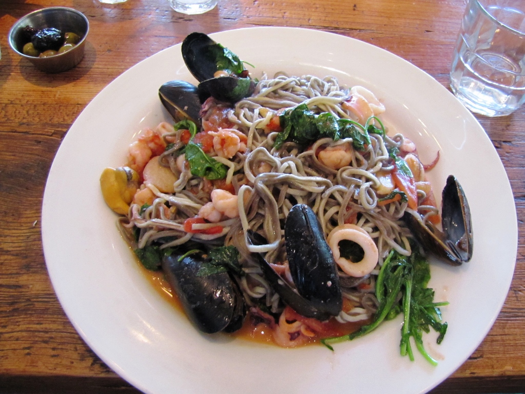 פסטה שני צבעים עם פירות ים (שימוש לא פחות מגאוני באניס – אפילו שונאי האניס אהבו)