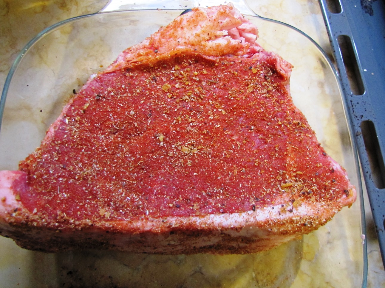 ופלפל שחור גרוס (חצי כמות), מרחתי היטב את הנתח והכנסתי למקרר ללילה.