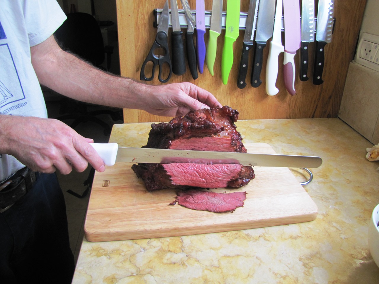 הטעם בסדר (חסר מלח) אבל המרקם בעייתי, ניסיתי פרוסה עבה, ניסיתי עם כיוון הסיבים, ניסיתי קוביות קטנות, אבל איך שלא חתכתי לא עזר – הבשר עצמו רך אבל כלוא בין סיבים דקים וקשים. ארזתי בואקום והכנסתי לסו-ויד על 82 מעלות תוך שאני ממלמל "אני עוד אפצח את האגוז הזה".