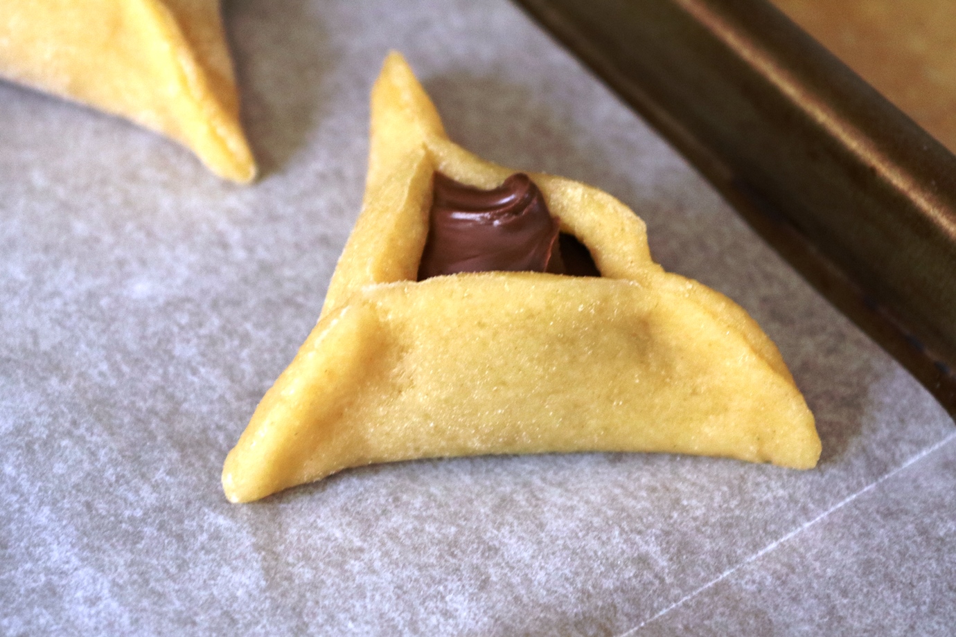 להניח באמצע כל עיגול מעט מילוי (נוטלה, ריבת תות עם קוקוס, שערות בקר) ולסגור לצורת משולש (לא לסגור לגמרי כי אתם לא רוצים פצצה מתוקה מתקתקת).