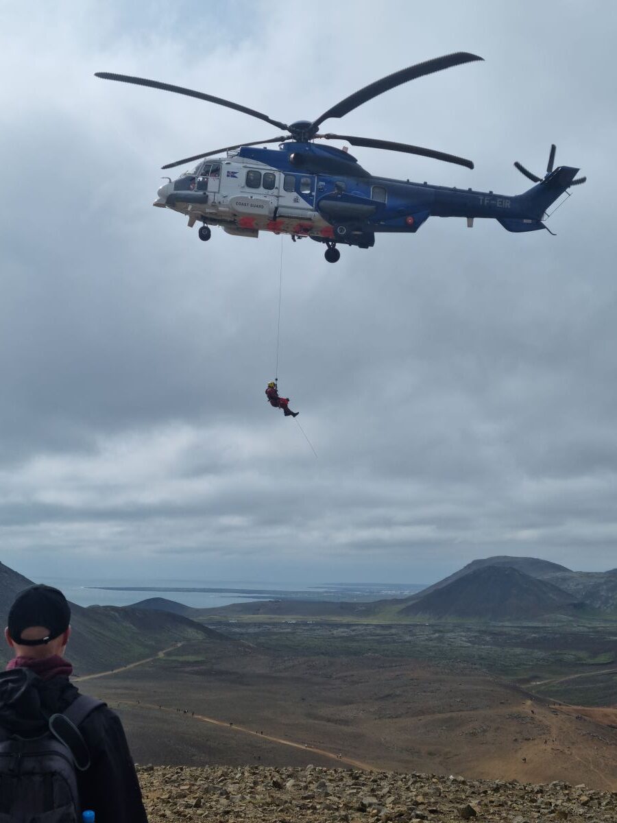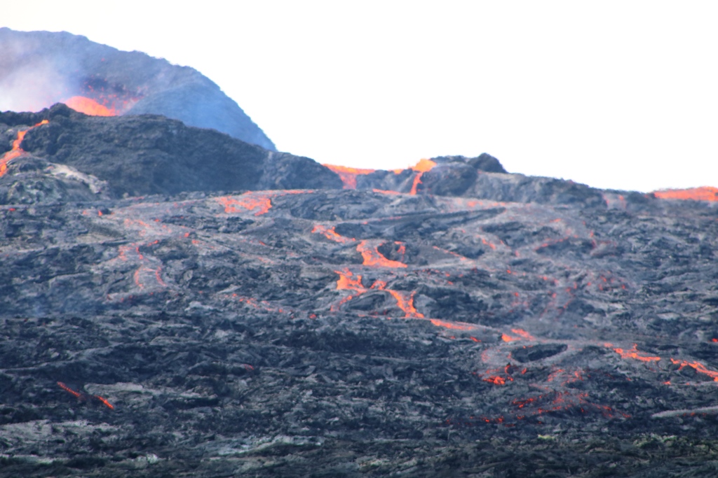 התעוררנו בבוקר, השמש כבר זרחה מזמן 😉 אחרי ארוחת בוקר במלון (10 אירו לאדם – ילדים מתחת לגיל 10 חינם) שהחלטנו לוותר עליה בימים הבאים, הזמנו מונית למשרד של החברה להשכרת רכב, שם עברנו את הליך השכרת הרכב המהיר בעולם, וקיבלנו סקודה אוקטביה חדשה מהניילונים. אחרי ביקור קצר בסופרמרקט המקומי על-מנת להצטייד בכריכים, ליקריץ ושוקולד (לא שילוב כל כך מוזר כמו שזה נשמע), גילינו שהר הגעש שאחריו עקבנו עוד מהארץ, Geldingadalir שהתעורר ב-19 במרץ השנה אחרי מנוחה של כ-6,000 שנה, מראה סימנים של תחילת פעילות בחיישנים הסיסמיים, ולכן החלטנו לשנות את התוכנית להיום ולנסוע לראות אותו. כחמישים דקות נהיגה הביאו אותנו לחניה לצד עוד לא מעט רכבים אחרים של שוחרי הלבה. האיסלנדים הספיקו בחודשים האלה לארגן דוכן נקניקיות וברקוד לתשלום על החניה, אין ספק – אנשים מסודרים. התחלנו לצעוד חמושים בכל ציוד ההליכה שרכשנו מבעוד מועד, כובעים וצעיפים כי למרות היום השמשי קר והרוח מתגברת. בתחילת הדרך הצעידה קלה אבל בהדרגה השיפוע מתחיל להיות יותר ויותר תלול ומאתגר. לפתע מתחילים לראות מרחוק סימנים של התפרצות כתומה וכולם נאנחים בהתפעלות, אנחה שתמשיך ותלווה אותנו ככל שנתקדם. הטיפוס למקום הכי קרוב הוא קשה באמת, ובדרך ראינו ממש מולנו מסוק שיורד לחלץ מטייל שכנראה לא צלחה דרכו…