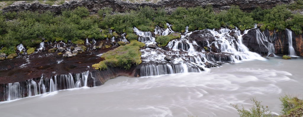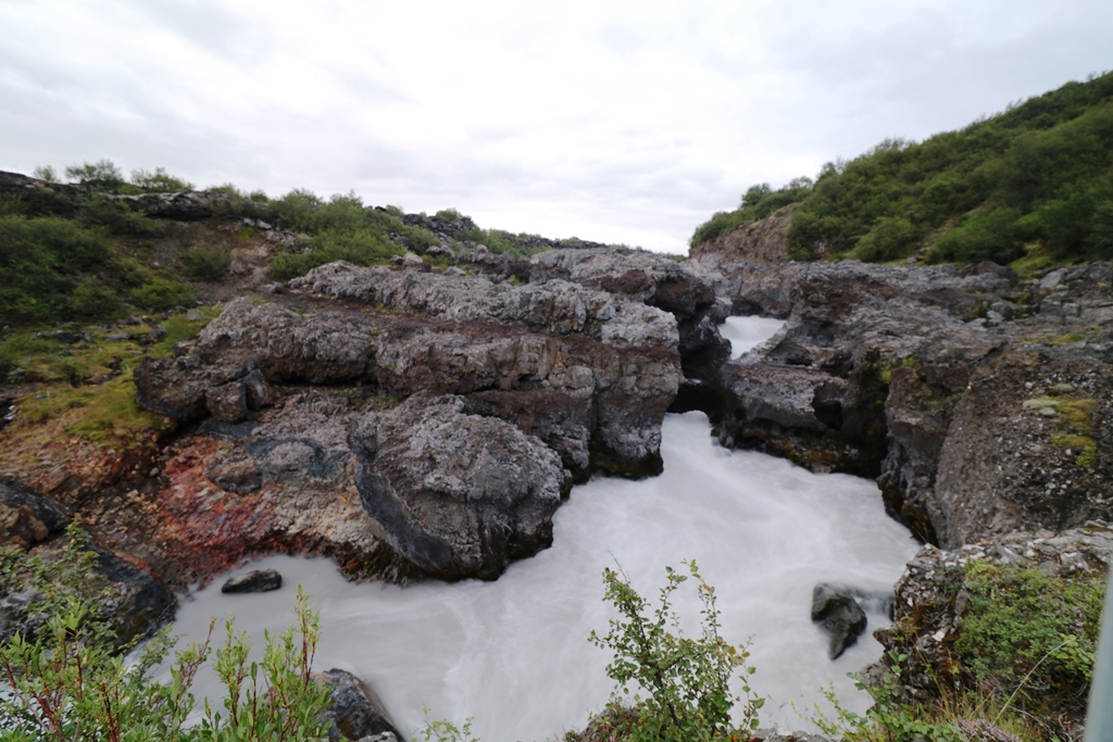 ראשית הליכה קלה לזוג מפלים השונים בתכלית זה מזה: Barnafossar ו-Hraunfossar, כי אם בבוקר היה foss, אז צריך כזה גם בערב 🙂