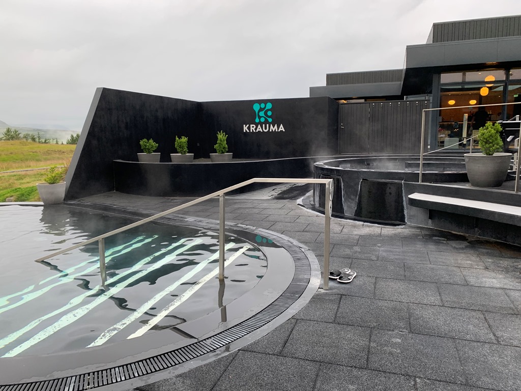 לאחר מכן נסענו לאזור המעיינות החמים עם הזרימה הגדולה ביותר באירופה – Deildartunguhver, האתר עצמו סגור לרגל שיפוצים, אבל המרחצאות שצמודים אליו, Krauma פתוחים, אז נכנסנו להתרעננות והרגעות.