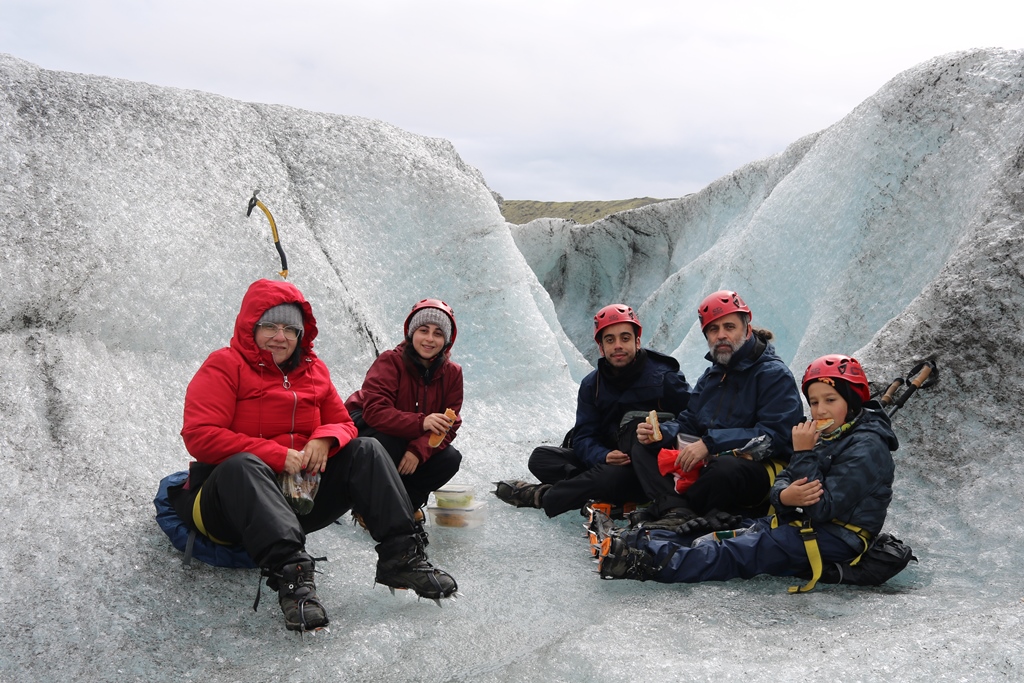 היידי מלאה בהתרגשות על פלאי הטבע הסובבים אותנו, על ההתחממות הגלובאלית המסכנת אותם, ובאופן כללי שופעת הסברים על התהליכים הגיאולוגיים והאקלימיים של האזור. הקרחון נע ומשתנה כל הזמן, וכשם שחצב בקרקע את העמקים שבתוכם הוא נמצא, כעת הוא נסוג ומשאיר מאחוריו אגמים. עשינו פיקניק על הקרח בתוך שקע שם הרוח פחות מפריעה.