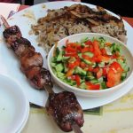 חומוס                                       פסטלים                          שיפוד כבד עוף עם מג'דרה וסלט