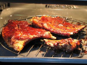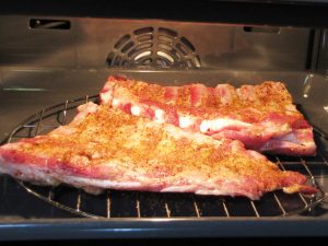 הנחת הצלעות על רשת בתוך תבנית והכנסה לתנור בטמפרטורה של 120 מעלות למשך שעתיים