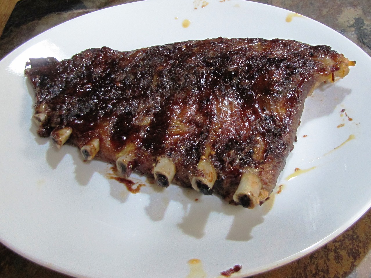 הוצאה מנייר האלומיניום, מריחה ברוטב ברביקיו בטעם מעושן (Sweet Baby Ray's) והחזרה לתנור לשעה נוספת