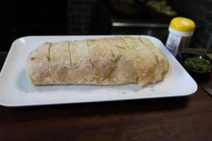 בירור קצר העלה שאכן יש אפשרות לאכול במקום. ל-4 כיסאות הבר הגבוהים הגלויים הוסיפו עוד אחד והתיישבנו.
