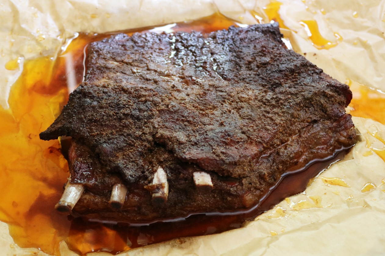 עטפתי בנייר קצבים וברדיד אלומיניום והחזרתי למעשנה לשעתיים נוספות עד שזה נראה כך: