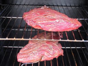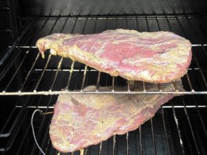 למחרת הדלקתי את המעשנה, כשהטמפרטורה הגיעה ל-110 מעלות הכנסתי את הנתחים למעשנה והוספתי שבבי עץ אפרסק.