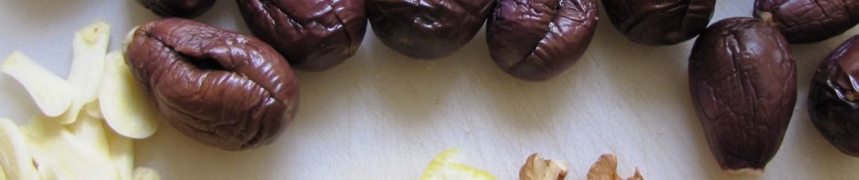 מצרכים: חצילונים, שום, לימון, פקאנים, מלח גס, שמן זית