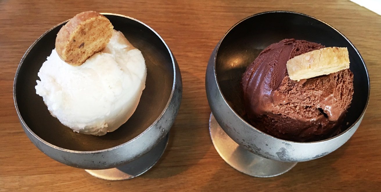 סיימנו בקפה הפוך טוב ושני כדורי גלידה בייתית – שתייהן לא מאוד מתוקות, שזה דווקא טוב, ומאוד נחמד שכל אחת מוגשת בקערה נפרדת. הקוקוס מצויינת – חתיכות הקוקוס עברו טיפול נכון והן לא קשות ויבשות. השוקולד קצת פחות מוצלחת עם טעם של קקאו ולא של שוקולד.