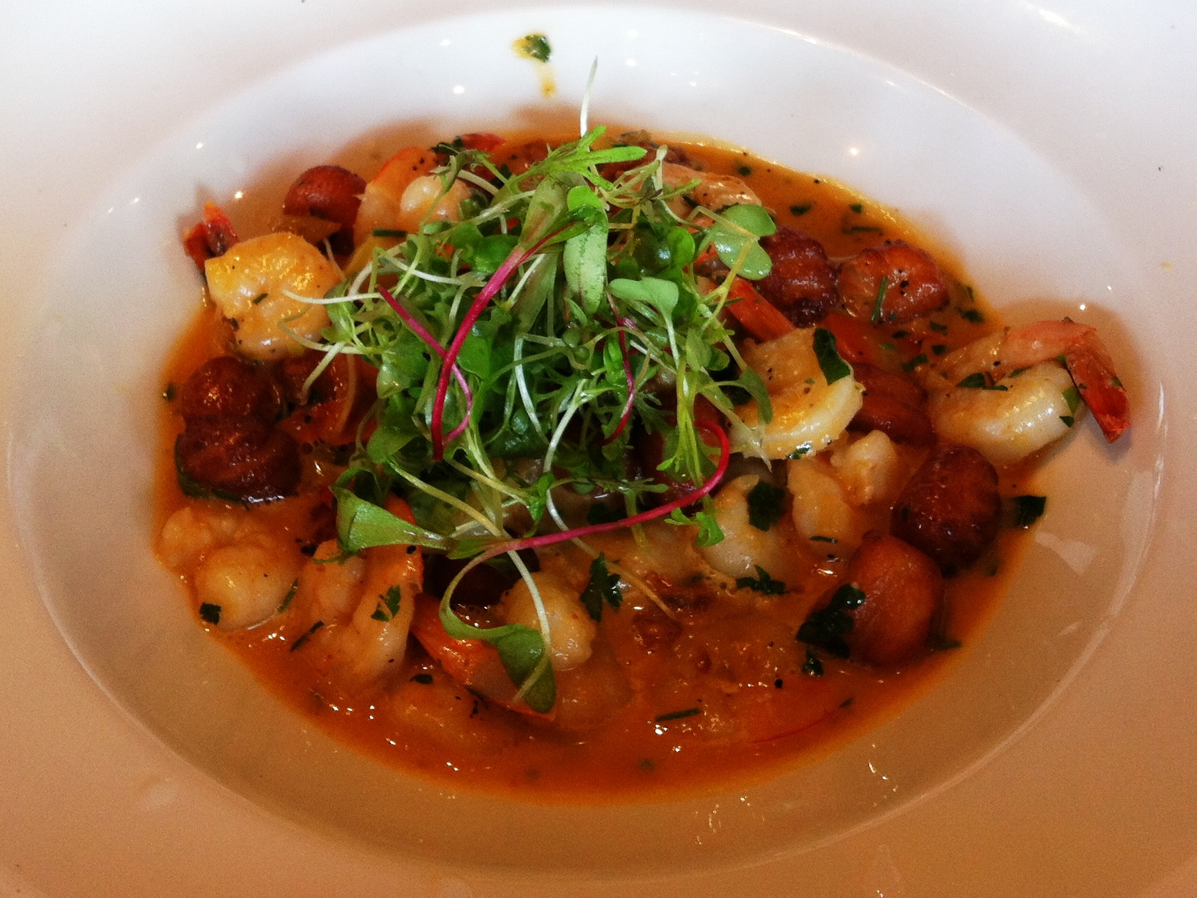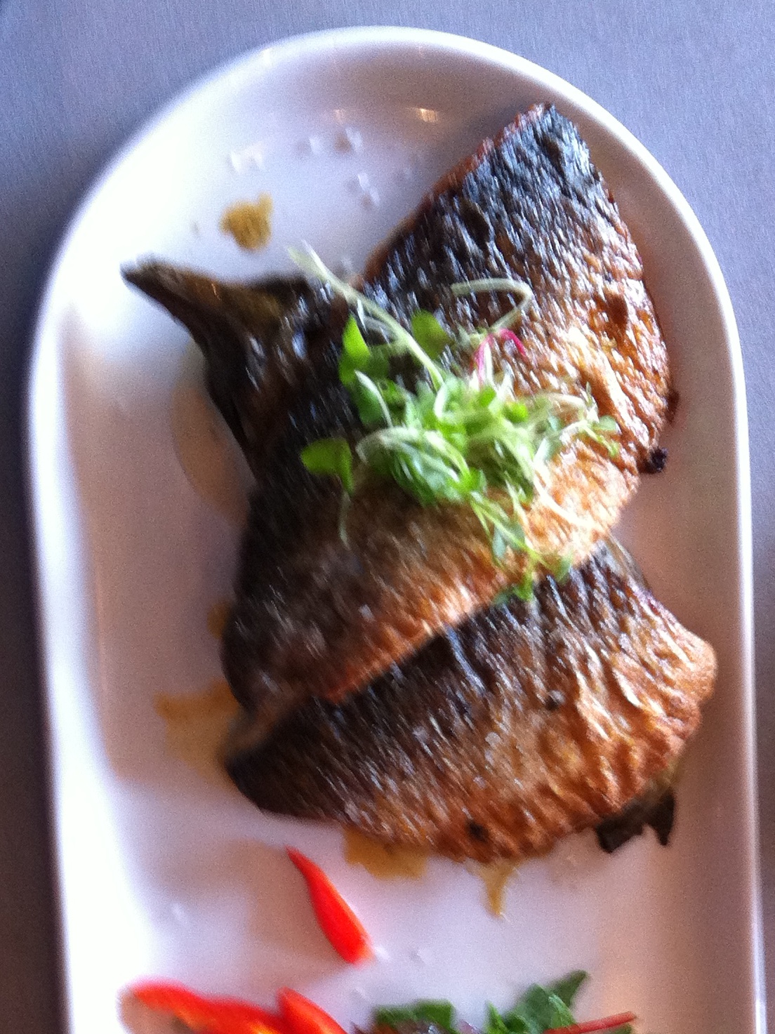 השניצל היה טוב, השרימפס בסדר, הדג היה "קצת הרבה" יותר מצרוב ולמרות שהוא נח על חציל קלוי בטחינה שהיה טעים, ניסיון החיבור שלהם היה מועד מראש לכישלון. בקיצור לא היה מספיק גרוע בשביל להתלונן, עד שראיתי את החרק בסלט שלי – סוג של יקרונית אם אינני טועה.