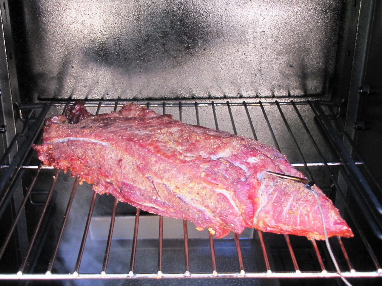 אחרי שעה הטמפרטורה הפנימית הגיעה ל-45 והפכתי את הנתח.