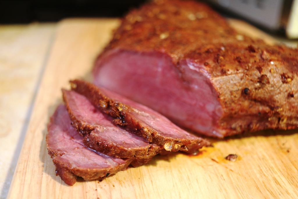 הכנסתי את השפיץ שייטל למעשנה, הוספתי צ'אנקים של חביות יין לגחלים והמתנתי עד שיגיע לטמפרטורה פנימית של 60 מעלות – מה שקרה מהר למדי.