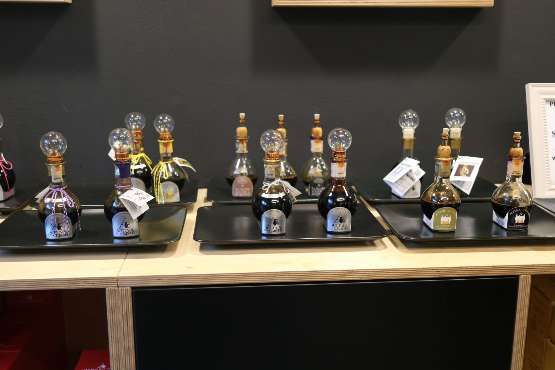 יוצאים לסיבוב בעיר. יום ראשון אחר הצהריים, מזג האוויר די נעים ונראה שכולם משוטטים בחוץ. נכנסנו לטעום חומץ בלסמי אמיתי ב-La Consorteria 1966. קיבלו את פנינו שתי נשים מנומנמות למדי, אך עם ידע רב בתחום. הן הסבירו על תהליך הייצור והיישון של החומץ, ועל ההבדלים בין חומץ בלסמי מסורתי (או כפי שנאמר על ידן, האמיתי) לבין האחד שניתן לקנות בסופרים באיטליה (שגם הוא לא בר השוואה לחומץ שיש בארץ). לאחר מכן עברנו לסבב טעימות של מגוון סוגים שונים של חומץ, ולאחר בחירות דמוקרטיות נבחר חומץ בלסמי אמיתי אחד שיחזור איתנו ארצה במזוודה. החומץ הנבחר נארז כמו תכשיט יקר ערך.
