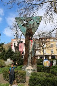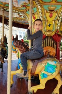 צעדנו משם חזרה אל רחבת בית העירייה שם אמור להתחיל הסיור. בזמן שאנחנו ממתינים אכלנו משהו קטן, שתינו קפה וצפינו בצעירי העיר סופגים שמש. תומר עשה סיבוב בקרוסלה המקומית.