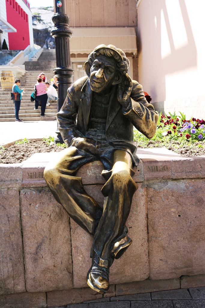 ליד השלט הצבעוני בצד הרחוב, ובמקום שבו תמיד נהג לשבת במציאות, יושב לו פסל של מילו. איש ססגוני שהפף לקמע של העיר. מילו נהג לברך על אישה שנקראתה בדרכו ולהחמיא לה ולכן אם תשפשפו את ברכו חיי האהבה שלכם יאירו לכם פנים. חוץ מזה אוזנו כרויה לשמוע את בקשותיכם והוא ישתדל למלא אותן אם כי אינו מבטיח שהוא יצליח. מה שהוא כן מבטיח זה שהוא לא יגלה את בקשתכם לאיש והוא גם מבין את כל השפות שבעולם 🙂