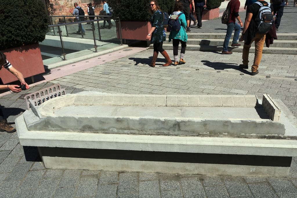 ממש במרכז המדרחוב נחשף חלק מאצטדיון רומאי שמשולב באופן מעניין בעיר המודרנית, אבל את רובו נאלצו להשאיר מתחת לאדמה שכן אין ספור בניינים אחרים כבר נבנו מעליו.