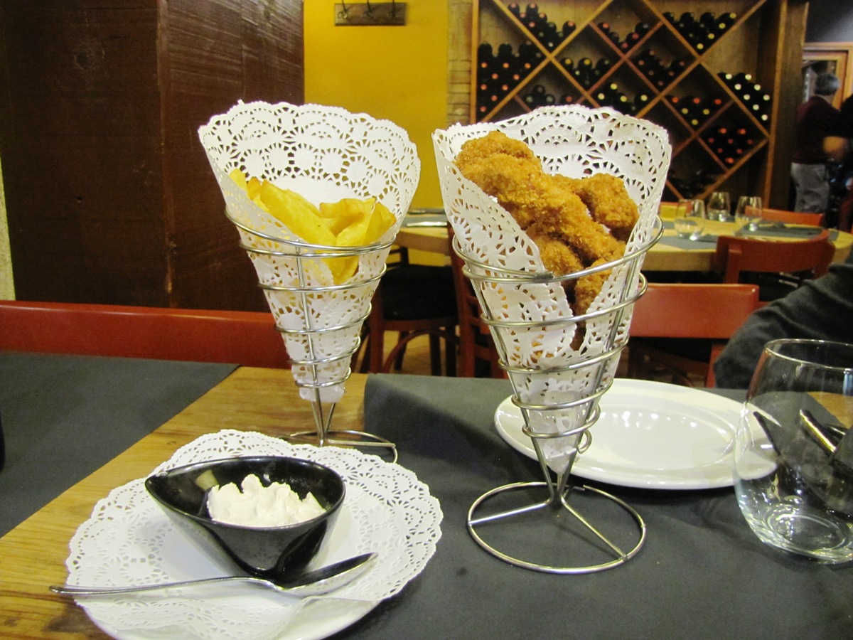 החלטנו להשלים חוסרים והזמנו פאייה לשניים וגם קוסינייו (cochinillo) לשניים ועוף וצ'יפס לתומר. קיבלנו לפתיחה גם צלחת קרוקטים על חשבון הבית.