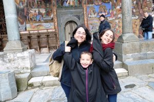 בצידי הדרך יש מסעדות המגישות פורלים הגדלים בנחל הזרם בסמוך. כשהגענו למנזר, להלן מנזרילה, גילינו שאמנם השמש זורחת אבל בחוץ ממש קר, ויעידו על כך גושי שלג גדולים שנמצאים בכל פינה ולא ממש נמסים. הזאטוט יצא בלבוש לא מספק מהאוטו, ואם השנה נתנה לו את המעיל שלה, ובתמורה קיטרה ללא הרף כמה קר. מנזרילה, אחד ממקומות החובה בבולגריה ואתר מורשת תרבותית עולמית של אונסקו מרשים מאוד גם במיקום שלו למרגלות ההר המושלג, גם בגודל וגם בארכיטקטורה.