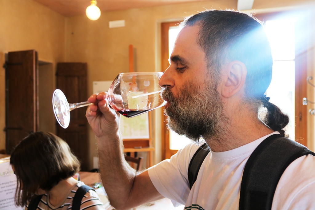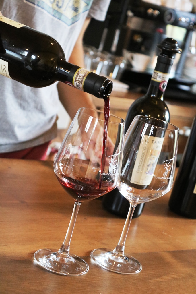 אחרי ביקור בסופר של הקמפינג וארוחת בוקר חביבה, נפרדנו מהקמפינג ויצאנו לדרכנו לכיוון פנזנו, למסעדה של דריו צ'קיני. זמן קצר אחרי שנכנסנו לתחום של קיאנטי, עצרנו ביקב כדי להבין על מה מדובר. אנחנו מעריכים יין טוב (טוב = טעים לנו), אבל אנחנו לא מבינים גדולים. מסתבר שבאזור של קיאנטי יש מעל 600 יקבים. כדי שיין ייחשב כקיאנטי קלאסיקו ויוכל לשאת בגאווה את סמל התרנגול השחור, עליו לעמוד בתנאים מוגדרים של זמן יישון בחביות, אחוזים של זני הענבים השונים ועוד. יש דירוגי איכות שונים ועוד שפע של מידע למי שמתעניין. טעמנו 5 סוגי יין שעשויים בעיקר מענבי סנג'ובזה. הם בהחלט היו שונים זה מזה, אך המסקנה העיקרית שלנו היא שזה כנראה לא זן הענבים החביב עלינו, למרות שהיינות לא היו כבדים ובהחלט טעימים. טעמנו גם שמן זית וגם ערכנו רכישה קטנה, כדי שיהיה במה להיזכר.