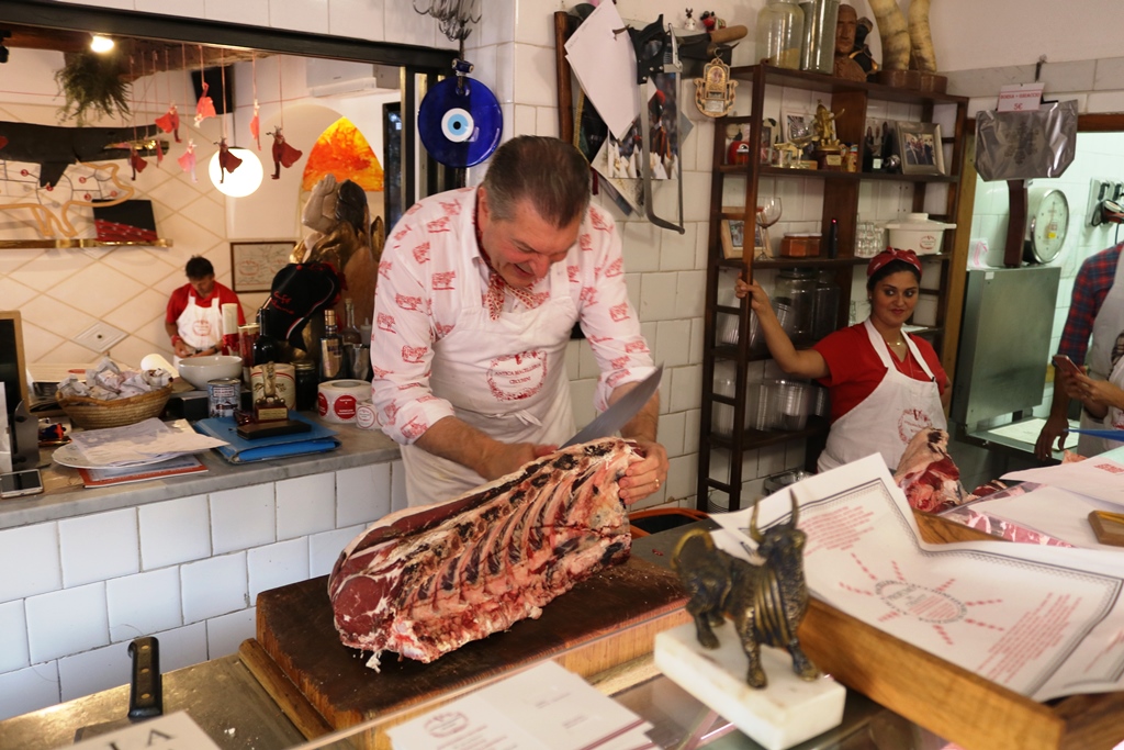 אחרי זמן קצר הגענו לממלכה של דריו. איטליז ומסעדה המפוזרת במספר לא קטן של חדרים/אולמות משני צידי הרחוב. לגמנו יין, נשנשנו נקניקים וצפינו במופע חיתוך הסטייקים.