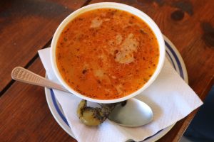 הדרך לשם תלולה ומלאה בורות מה שמהווה אתגר נהיגה לא פשוט הן בדרך לשם והן בחזור. למעלה הנופים מרהיבים, וכיוון שהרעב התעורר התיישבנו לאכול משהו ב"מזנון" (אין שם אחר למרות שגם השם הזה לא ממש משקף את העניין). מספר בולגרים שמתפעלים דוכן מזכרות ומטבח קטן באמצע שום מקום. אכלנו מרק עוף, מרק שעועית, ציפס עם גבינה מעל וכוס קפה – 8 לבה. בארץ רק להדליק את התנור היה עולה יותר.