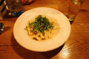 התמקמנו והחלטנו לצאת קודם כל לסיבוב קניות קטן ב-Metro שנמצא לא רחוק מהמלון. גילינו סופרמרקט ענק, מעין הכלאה בין הום-סנטר לחצי-חינם אבל ענק ממש, מרווח מאוד וכמעט ריק. המטרה הראשונה מזוודה נוספת וחוץ מזה כל מיני דברים – המחירים נעים בין 1/4 ל-1/2 מהמחירים בארץ. משם המשכנו אל פלובדיב לחפש ארוחת ערב. נסיונותינו הראשונים להתמצא ולחנות נחלו כישלון. העיר מסובכת ומפותלת ו-Google Maps לא בהכרח מצליח למצוא את דרכו בה. לבסוף מצאנו את עצמנו עם האוטו ברחובות הקטנים והצרים של העיר העתיקה, מתקרבים באופן תמוה למיקום המסעדה שבחרנו מראש. מצאנו חתיכת מדרכה שלא היה נראה בסביבתה שילוט שנוגע לאזהרות חניה, ושמנו נפשינו בכפנו. יצאנו לחפש את המסעדה. כיוון שכבר די מאוחר החנויות סגורות אבל הכל נראה נעים ומרווח במדרחוב, ובמרכזו אצטדיון עתיק שכמו משולב בהווי החיים שסביבו. בליבו של רחוב הנמצא בשיפוצים (מוטיב חוזר היום) מצאנו את Smokini. מסעדה נעימה, מלצרים חביבים דוברי אנגלית, ואוכל מצויין. חזה עוף ברוטב תאנים וגבינת ברי מומסת מעל היתה מנה מושלמת כמו גם קינוח של גלידת נוגת ותאנים.