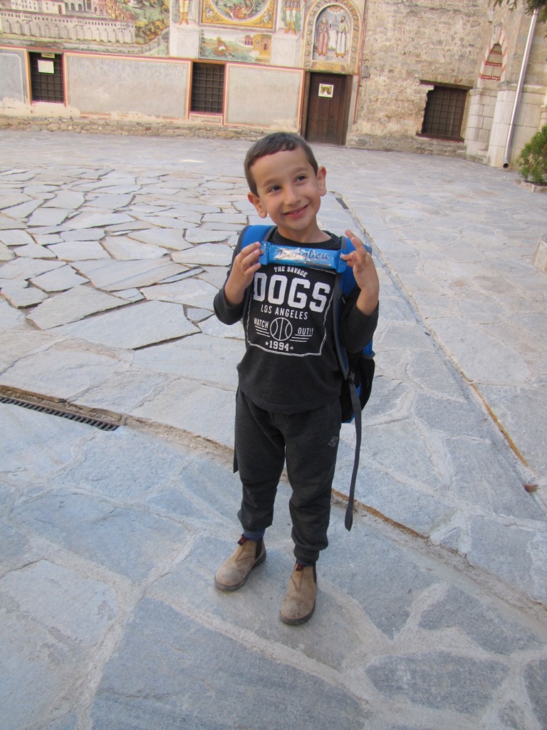 כשחזרנו וטיפסנו אל המכונית היו שם עוד מספר זקנות עם דוכני מפות, דבש וריבה שהתאכזבו מהעדר הרצון שלנו לרכוש מהן משהו. לא שלא רצינו, פשוט לא היה יפה. משם למנזר בצ'קובו (Bachkovo) שקצת דומה למנזר רילה אך פחות מרשים, וגם נמצא בשיפוצים. עוד הבדל מהותי בין שני המנזרים הוא במזג האוויר, ברילה היה קפוא ואילו כאן נעים. יש פה לא מעט נזירים שמסתובבים בשטח, אחד מהם התלהב מתומר ורץ לחדרו כדי להביא ממתק ולזרוק לו מהקומה השניה. סה"כ סיבוב קצר וממצה.