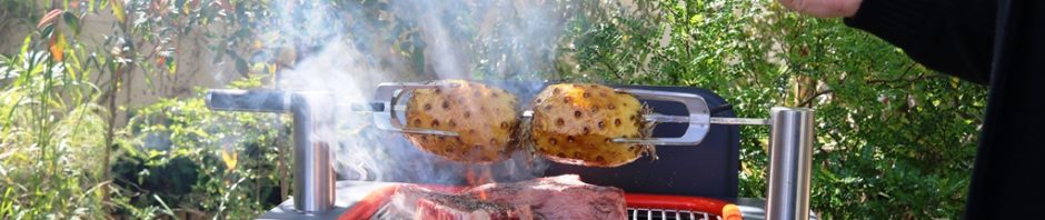 – שני גדלים של גרילי פחם Fusion ו-Hub עם הצתה חשמלית ושיפוד רוטיסרי משולב