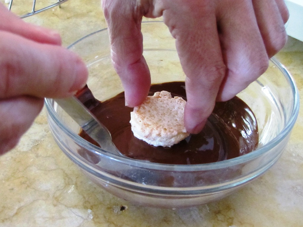 להמיס במיקרו 100 גרם שוקולד מריר, כל פעם עוד 30 שניות