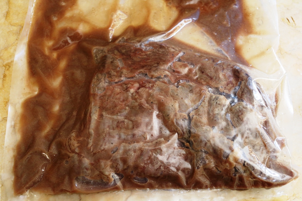 מריחה טובה של הבשר במרינדה והכנסה לשקיות ואקום.