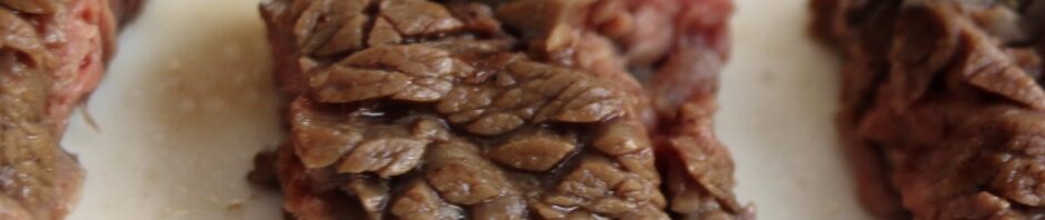 חיתוך לרצועות (בניצב לכיוון הסיבים – חשוב ביותר לאיכות הביס בנתח הזה!)