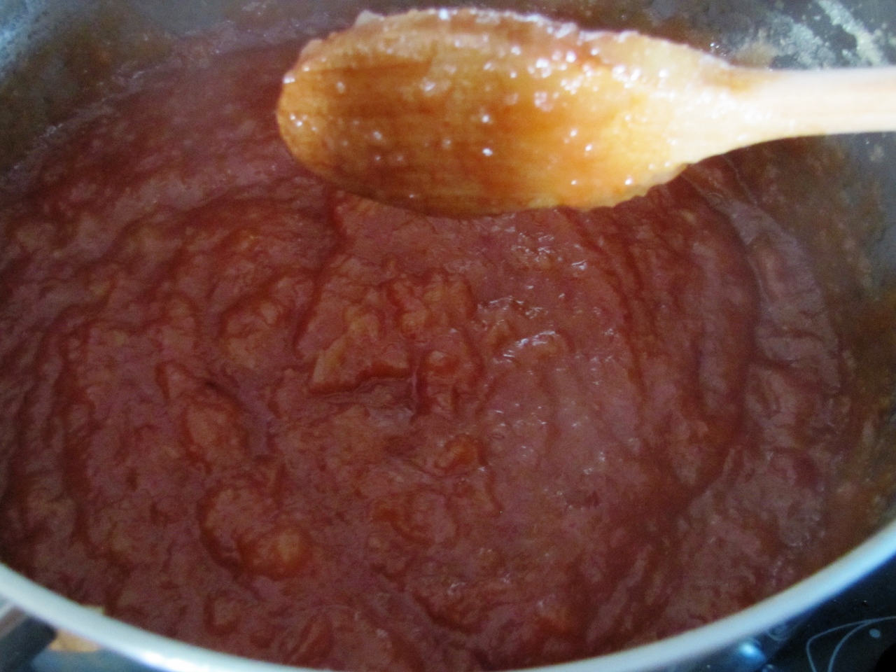 מכניסים את החבושים הטחונים והסוכר לסיר ומבשלים על אש קטנה תוך כדי ערבוב מדי פעם עד שהתערובת מסמיכה, מאדימה ומבריקה (שעה או יותר).
