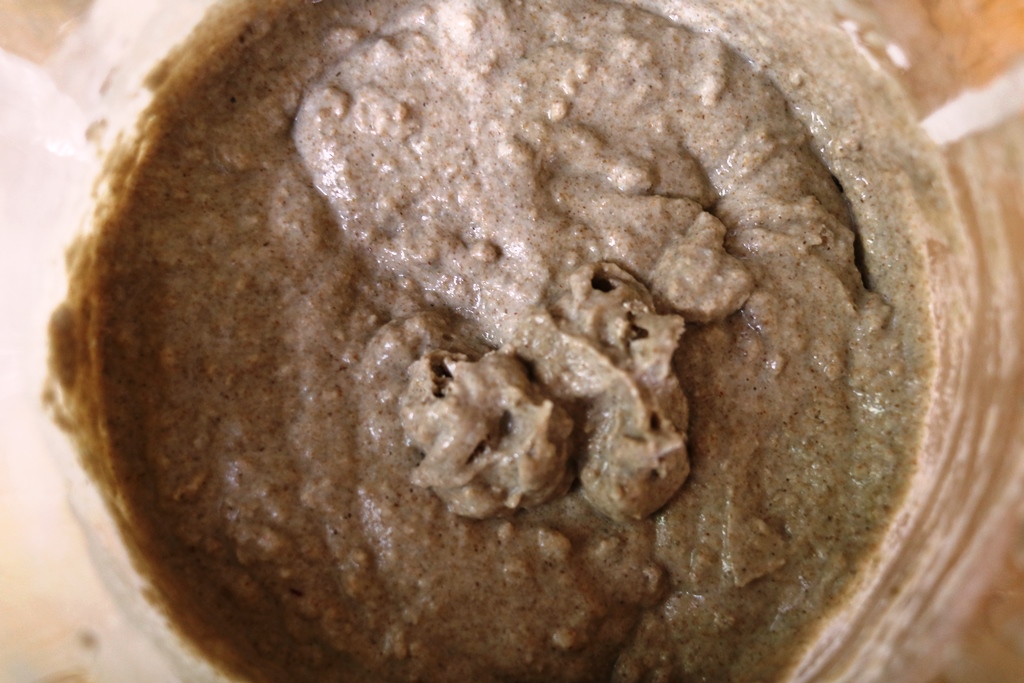 מערבבים ידנית (עם כף) את כל המרכיבים למעט המלח כשתי דקות לתערובת גסה, מכסים ומשאירים לנוח כחצי שעה.
