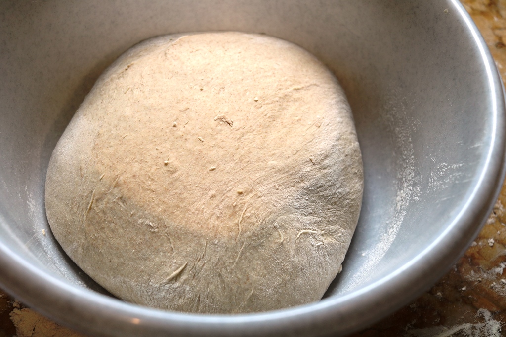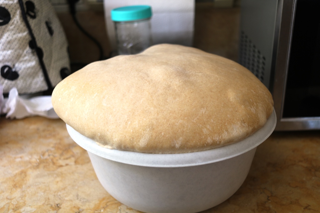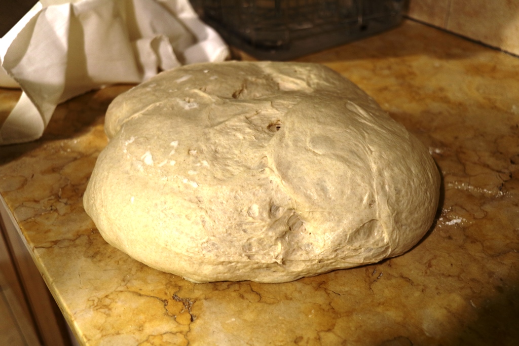 מניחים את כדור הבצק על משטח מקומח (קמח לבן רגיל זה בסדר), מושכים צד אליכם ומקפלים אותו לאמצע הכדור, מסובבים את הכדור רבע סיבוב וחוזרים על הפעולה (סה"כ 4 פעמים) ומחזירים לקערה מכוסה.