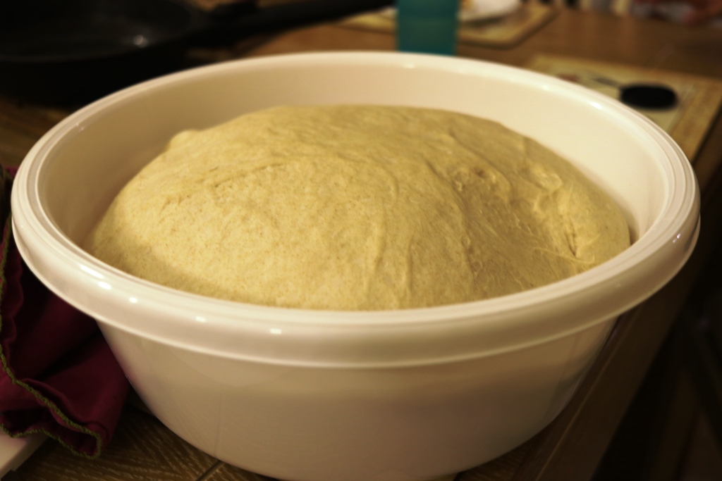(* הערה שלי – למי שאין תנור גדול תהיה עכשיו בעיה כי יש 2 כיכרות לחם!)