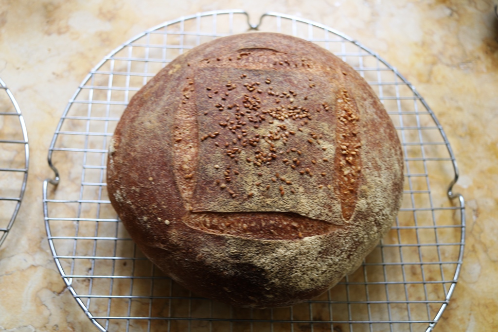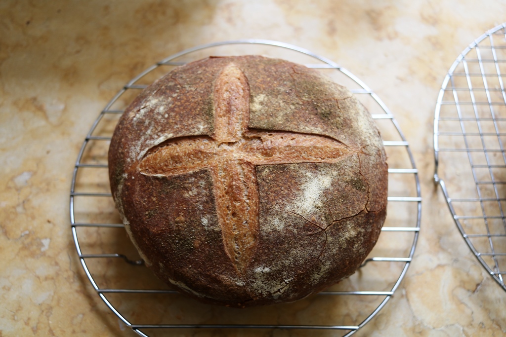 העבירו את הלחם לרשת ואפשרו ללחם להתקרר למשך שעתיים לפחות (מומלץ שלוש) ואז אפשר לפרוס