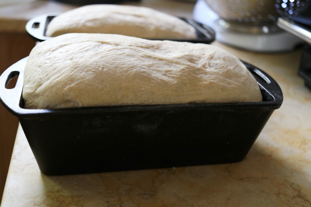 אפשר בהתפחה השנייה להמיר את הקערה העגולה בשתי תבניות לחם מלבניות מברזל יצוק, לוותר על נייר האפייה ועל המרדה ולקצר קצת את זמני האפייה ל-25 דקות + 30 דקות + 10 דקות.