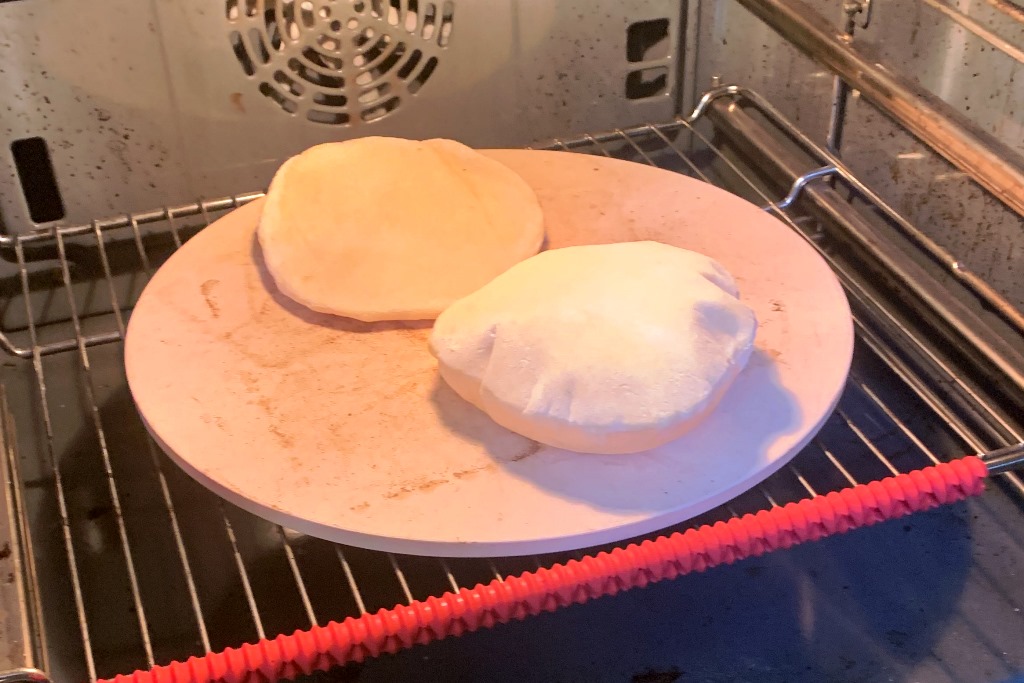 – מניחים פיתות על אבן השמוט למשך 30 שניות ואז הופכים אותן