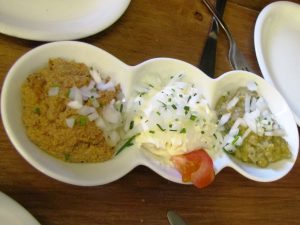 לשולחן הגיעו "מעורבת" – שלישיית סלטים: חצילים, איקרה וכבד קצוץ