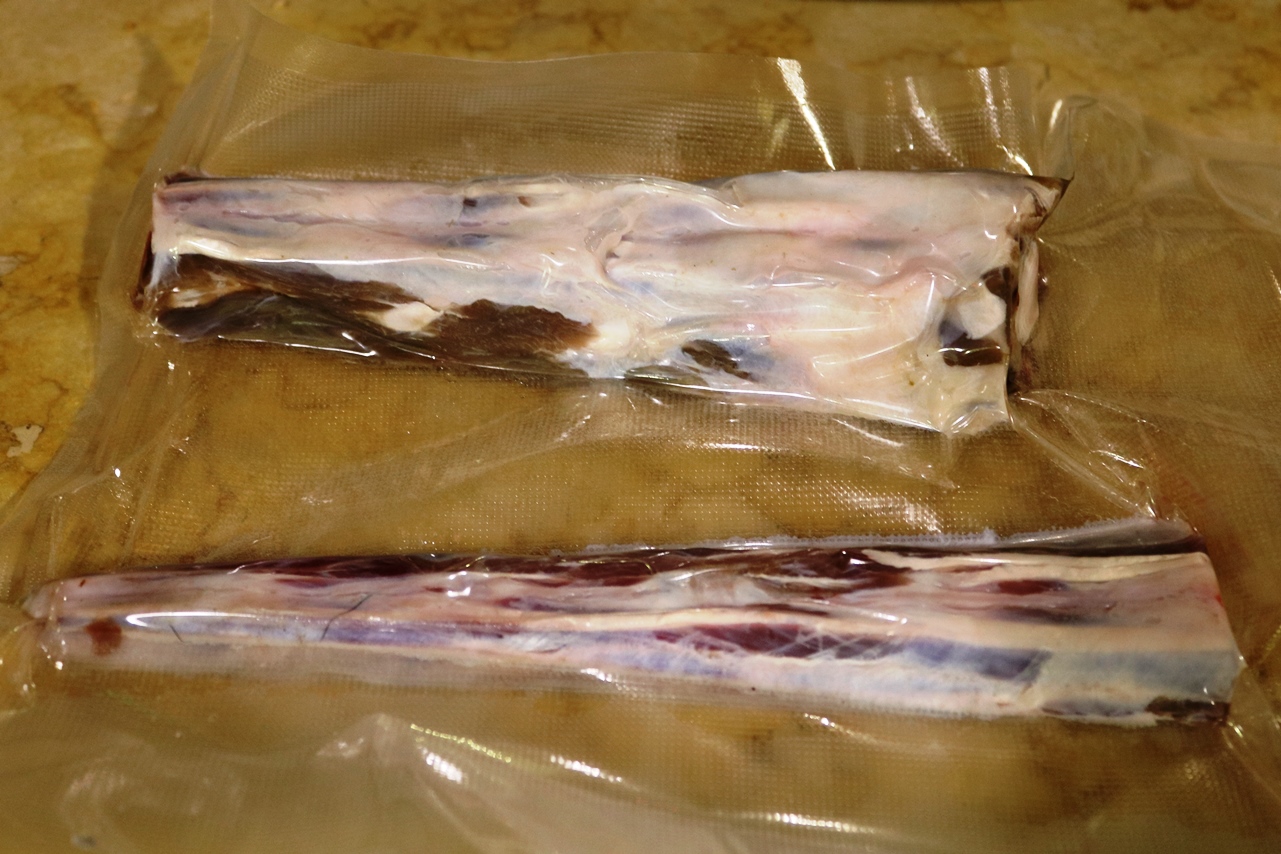 הכנסתי את שני החצאים לסו-ויד ב-82 מעלות למשך 12 שעות, קיררתי במי-קרח והעברתי למקרר.