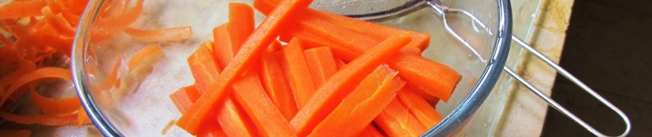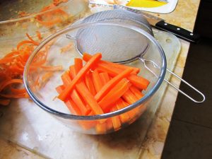 1. מכניסים את הגזר לסיר מים מומלחים רותחים למשך דקה, מוצאים ושוטפים במים קרים לעצירת הבישול.